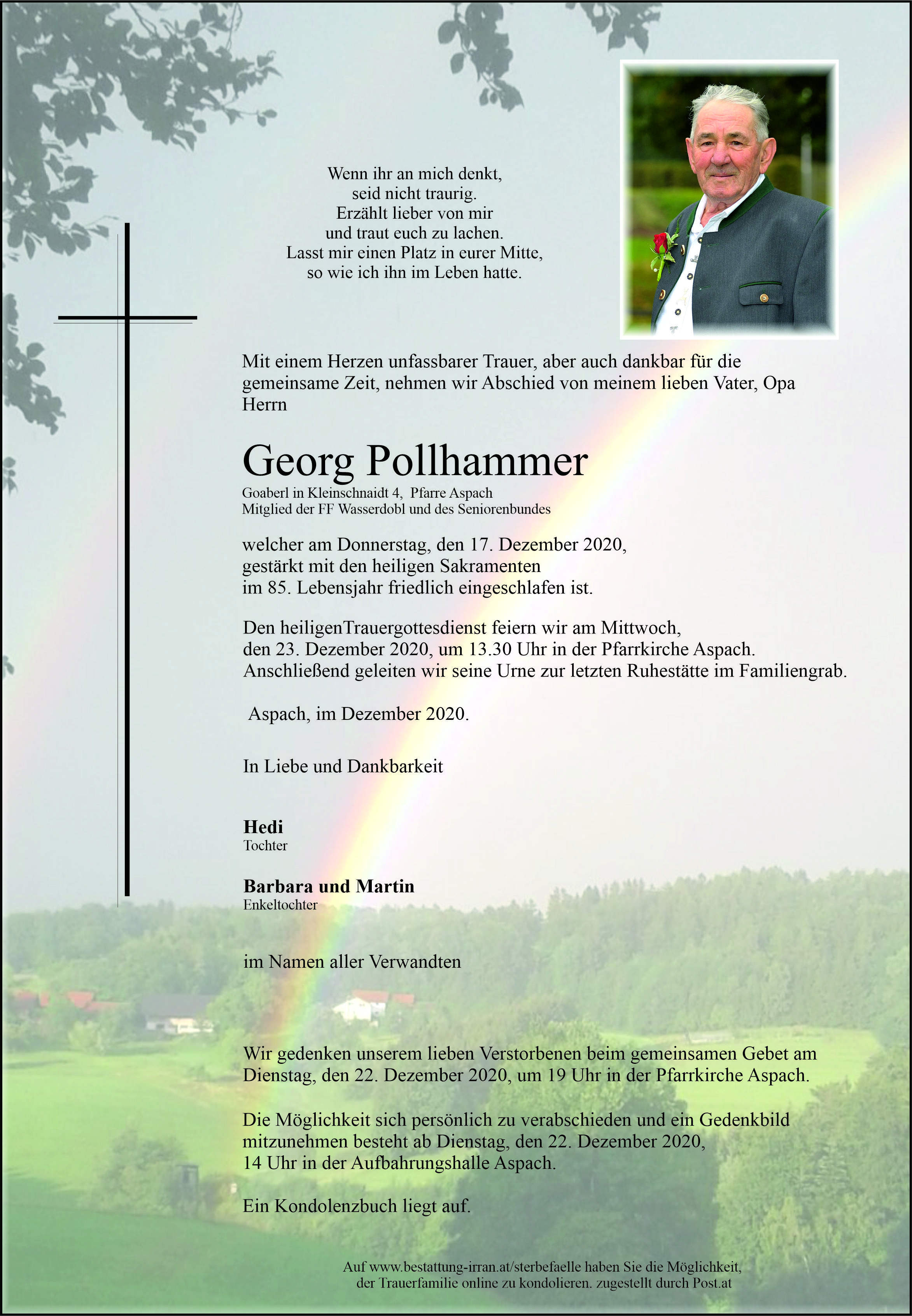 † Donnerstag, 17. Dezember 2020 Georg Pollhammer Aspach zurück