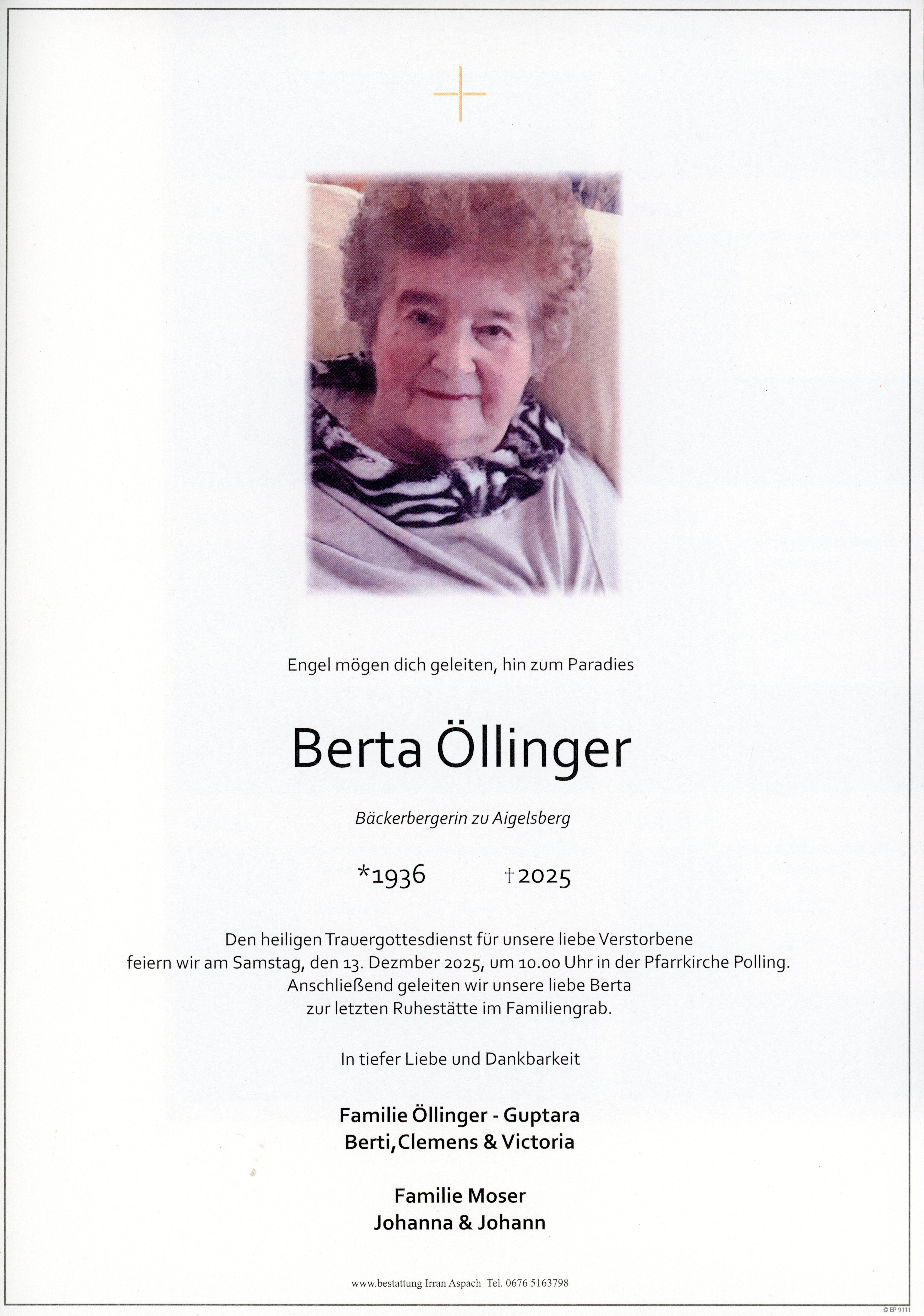 † Donnerstag, 3. Dezember 2025 Berta Öllinger Polling zurück