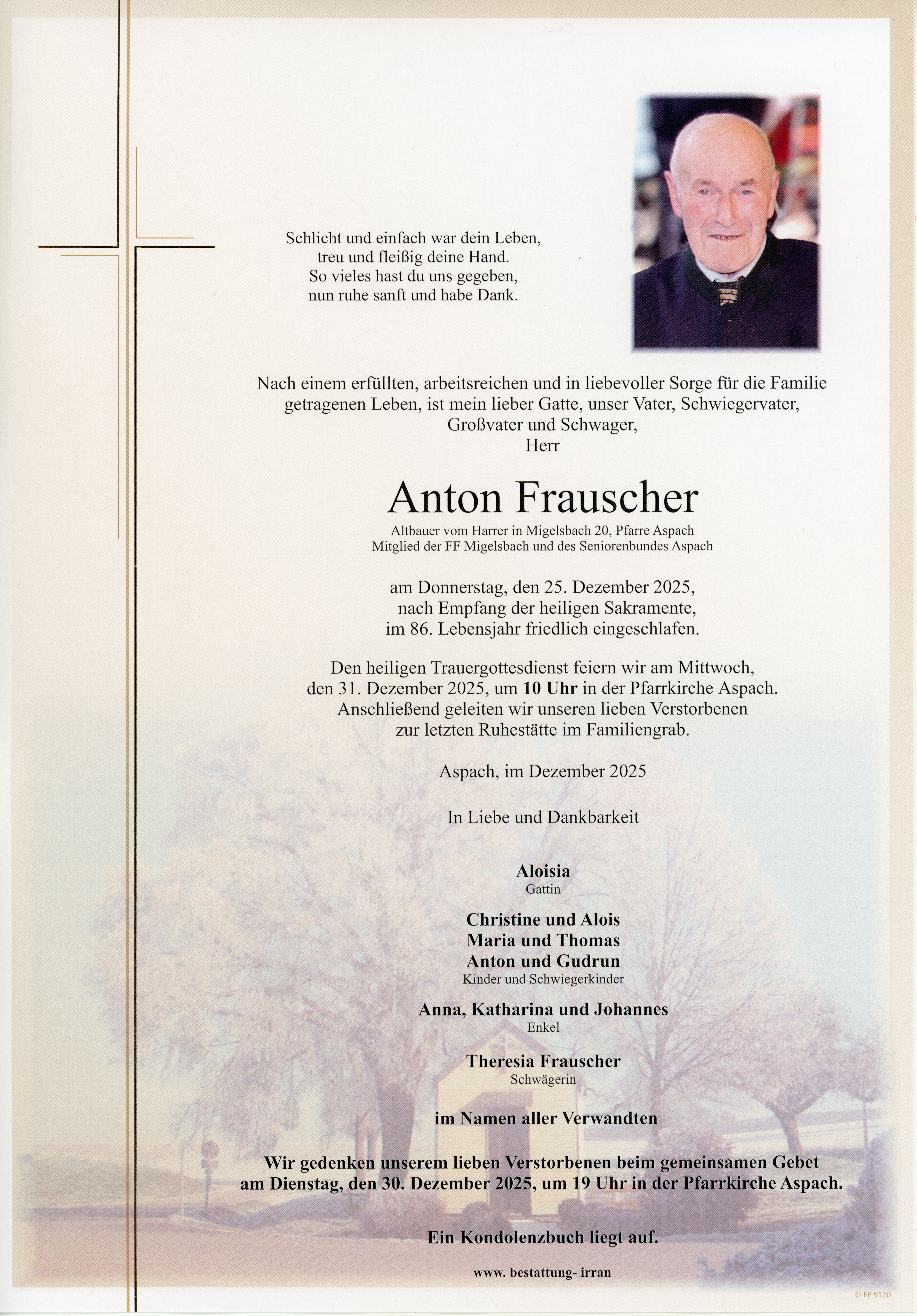 † Donnerstag,25. Dezember 2025 Anton Frauscher Aspach zurück
