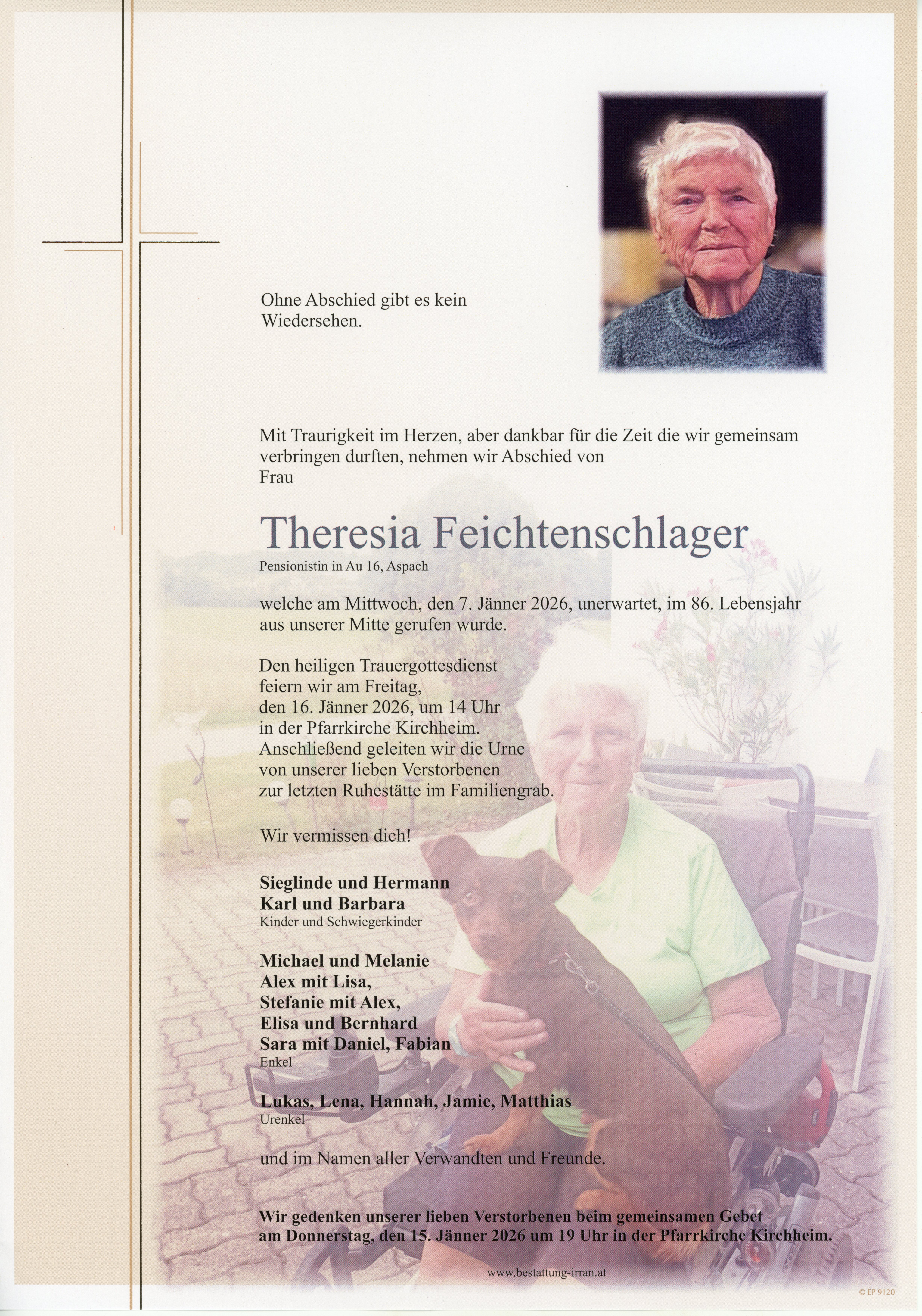† Mittwoch, 7. Jänner 2026 Theresia Feichtenschlager Aspach-Kirchheim zurück