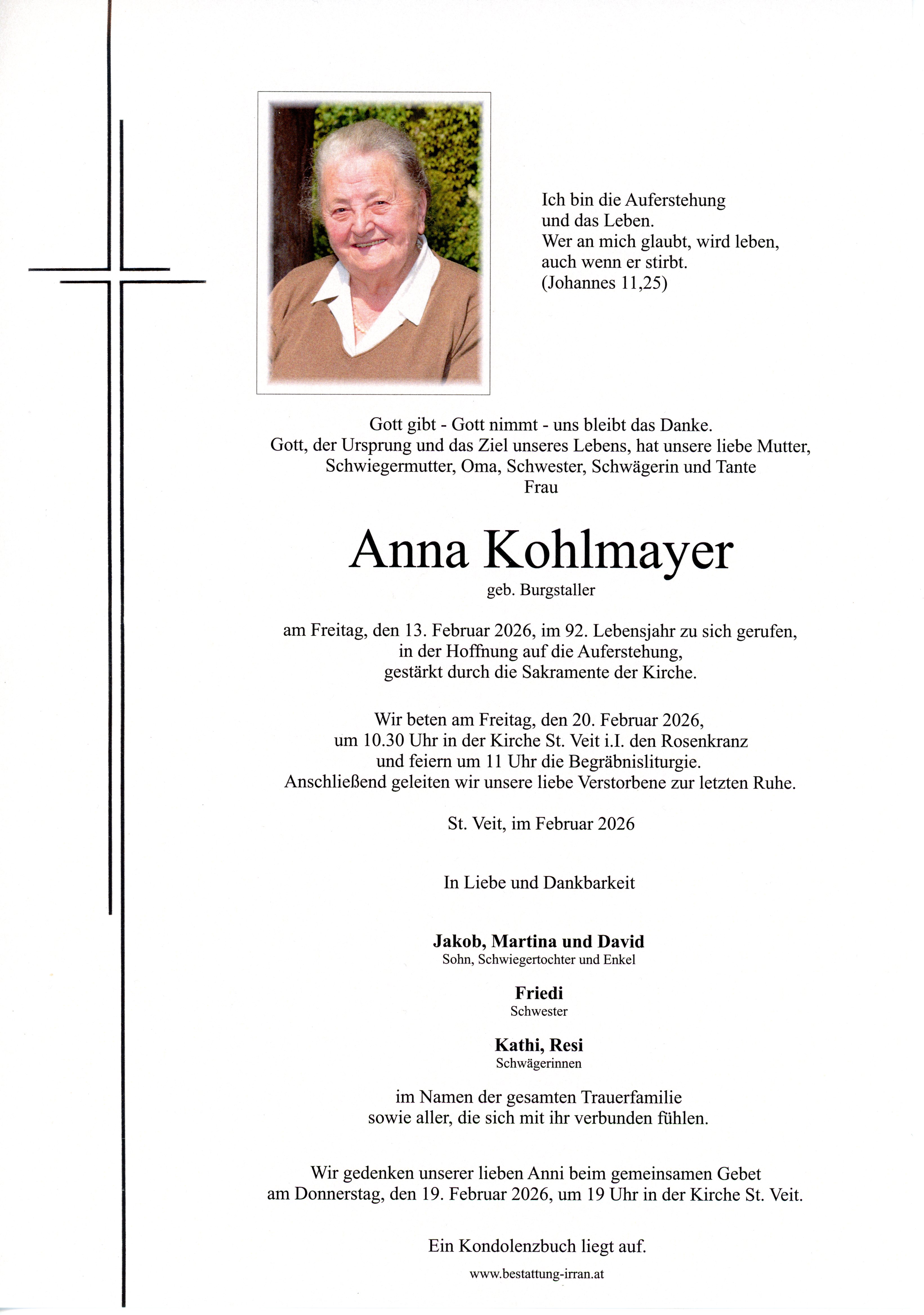 † Freitag, 13. Februar 2026 Anna Kohlmayer St. Veit im Innkreis zurück