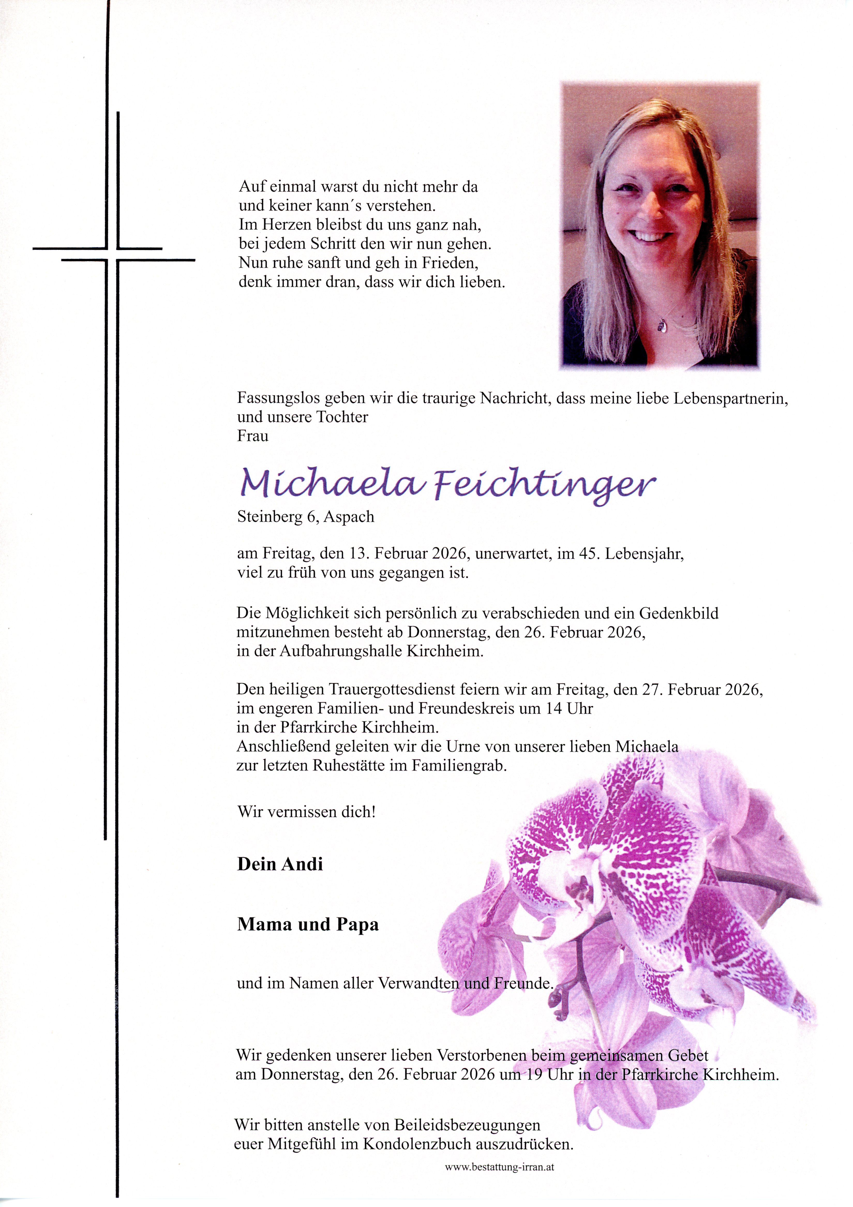 † Freitag, 13. Februar 2026 Michaela Feichtinger Aspach Kirchheim zurück