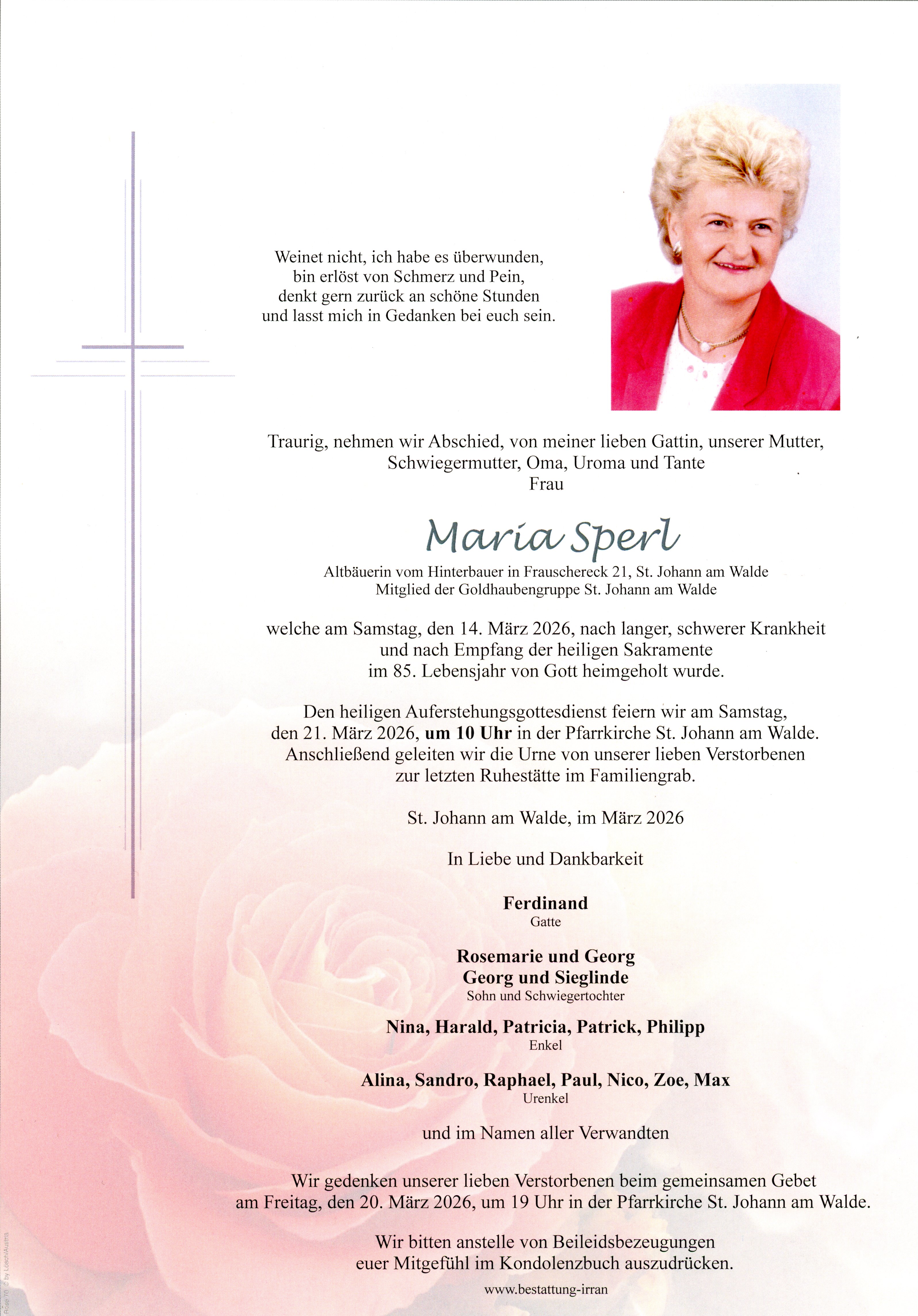 † Samstag, 14. März 2026 Maria Sperl St. Johann am Walde zurück