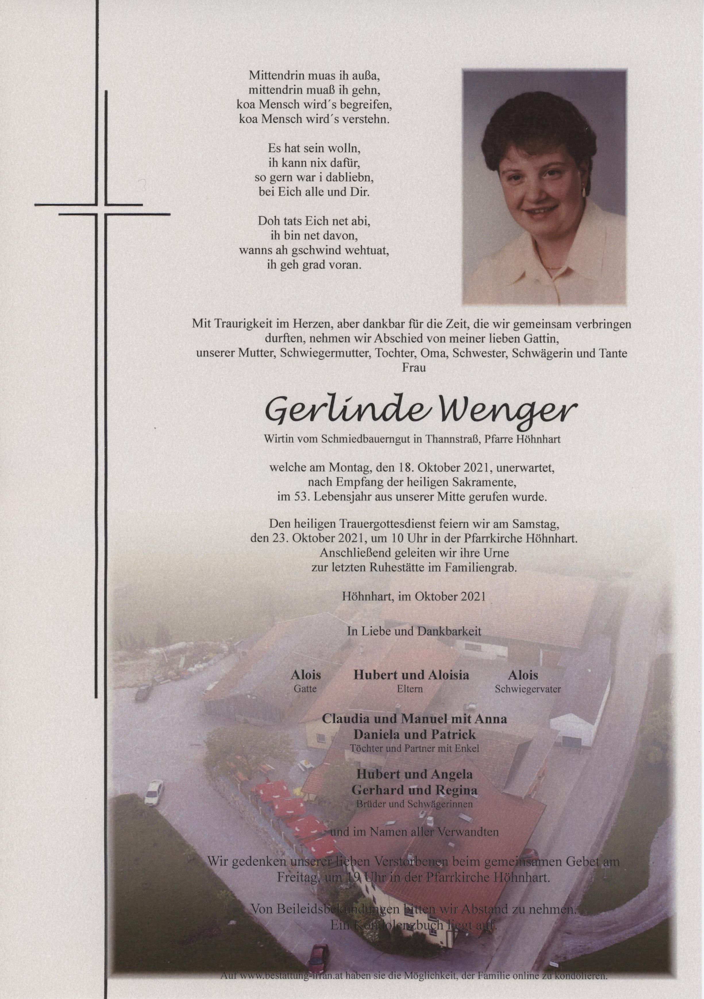 † Montag, 18. Oktober 2021 Gerlinde Wenger Höhnhart zurück