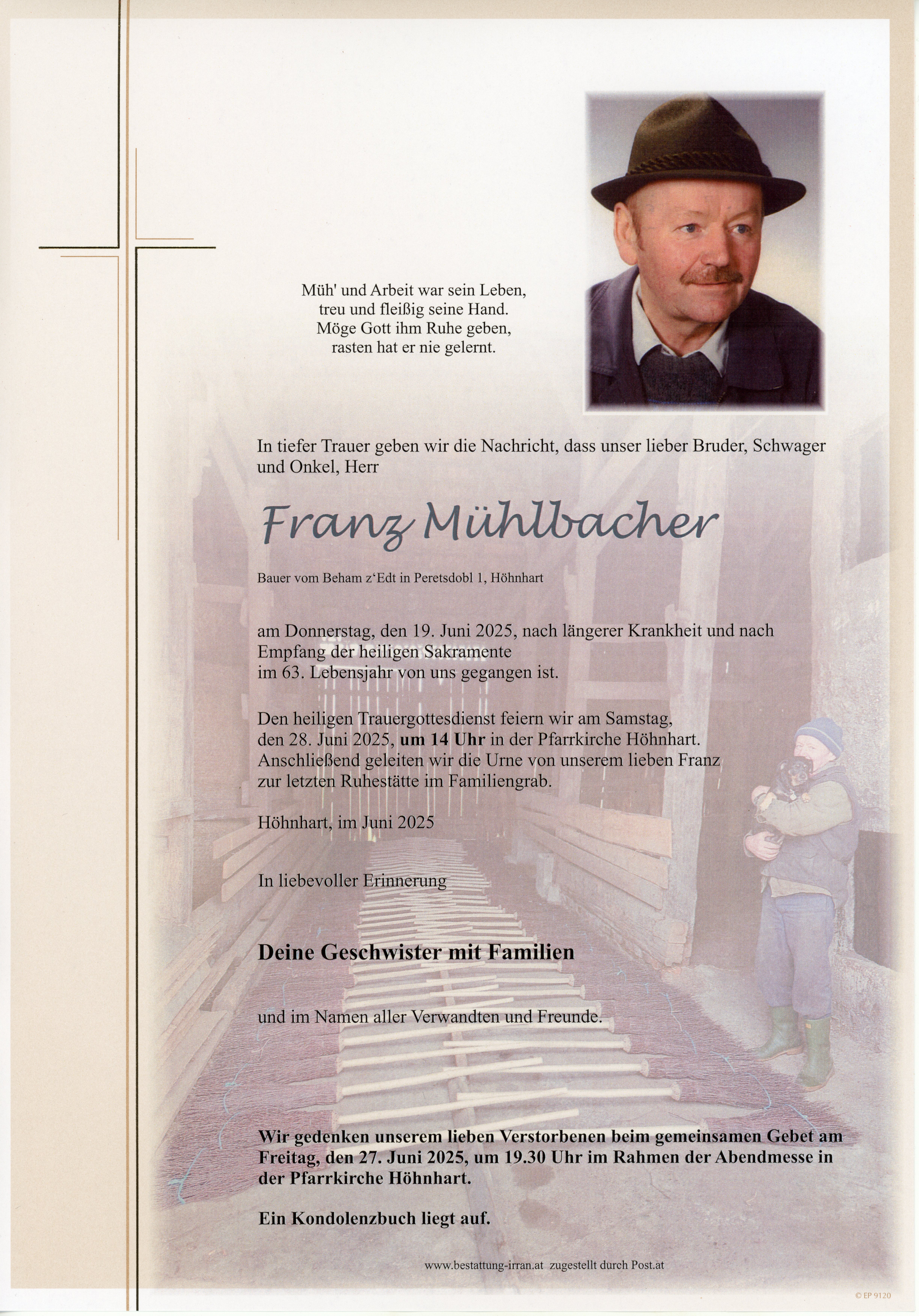 † Donnerstag, 19. Juni 2025 Franz Mühlbacher Höhnhart zurück