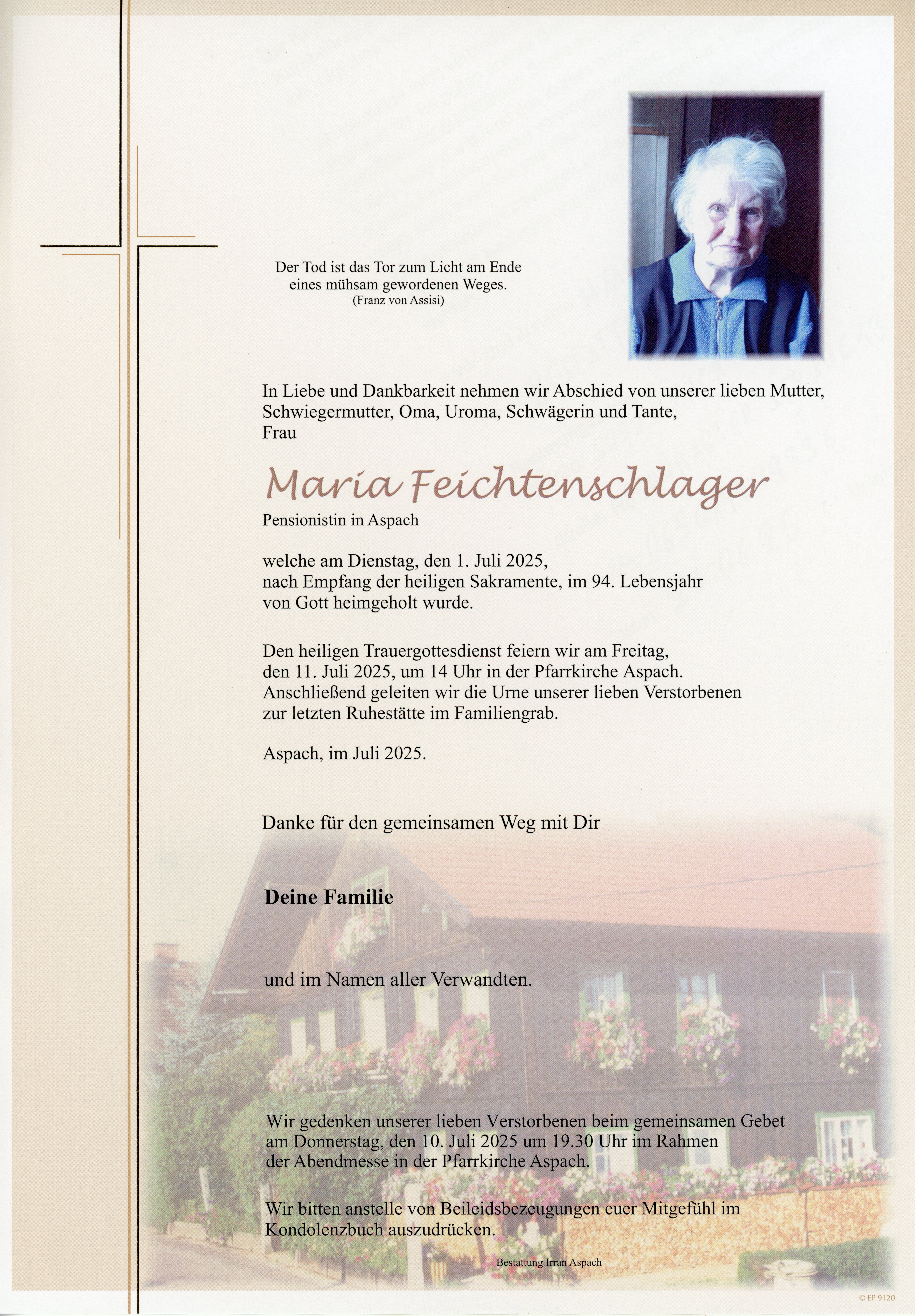 † Dienstag, 1. Juli 2025 Maria Feichtenschlager Aspach zurück
