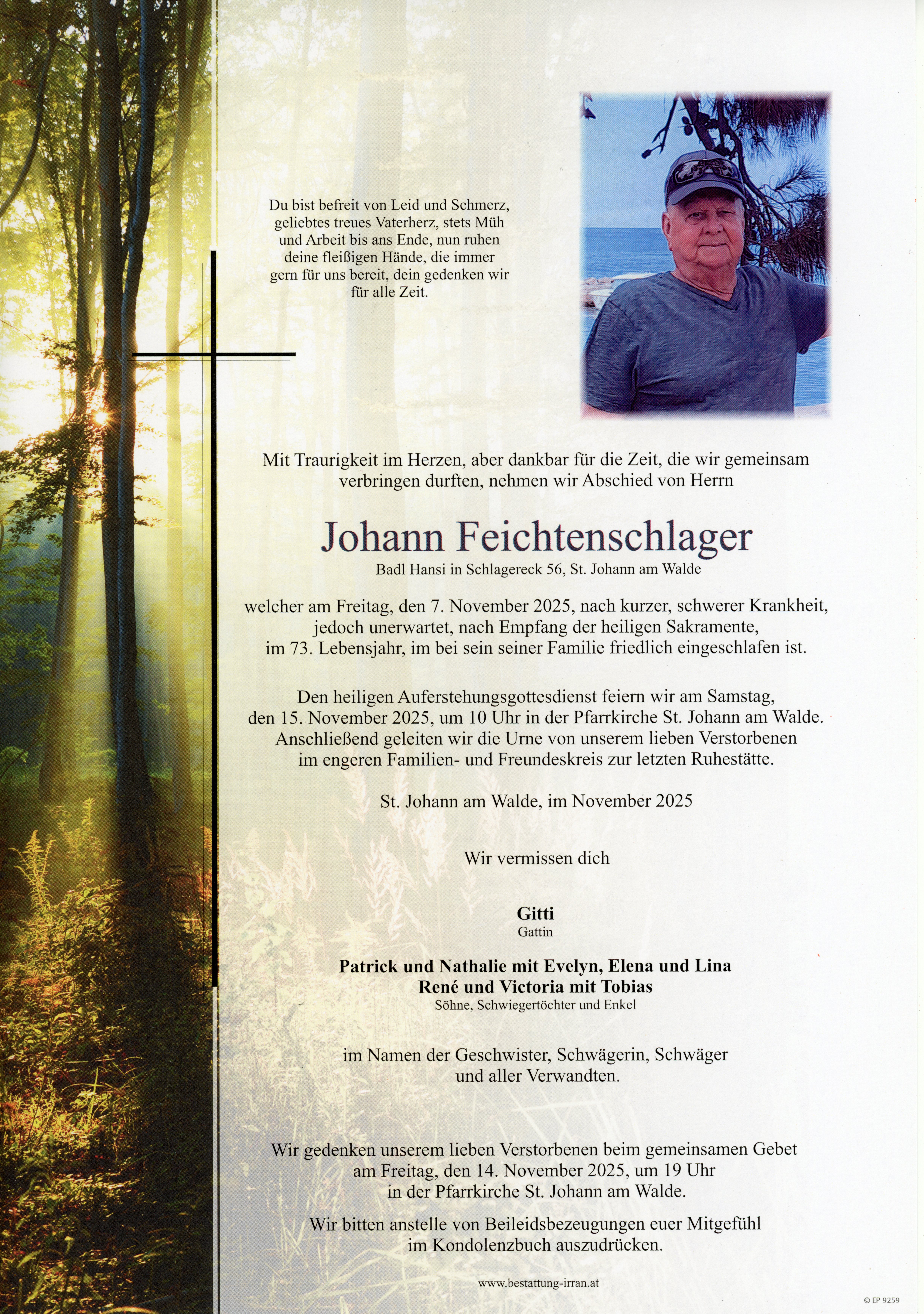 † Freitag, 7. November 2025 Johann Feichtenschlager St. Johann am Walde zurück