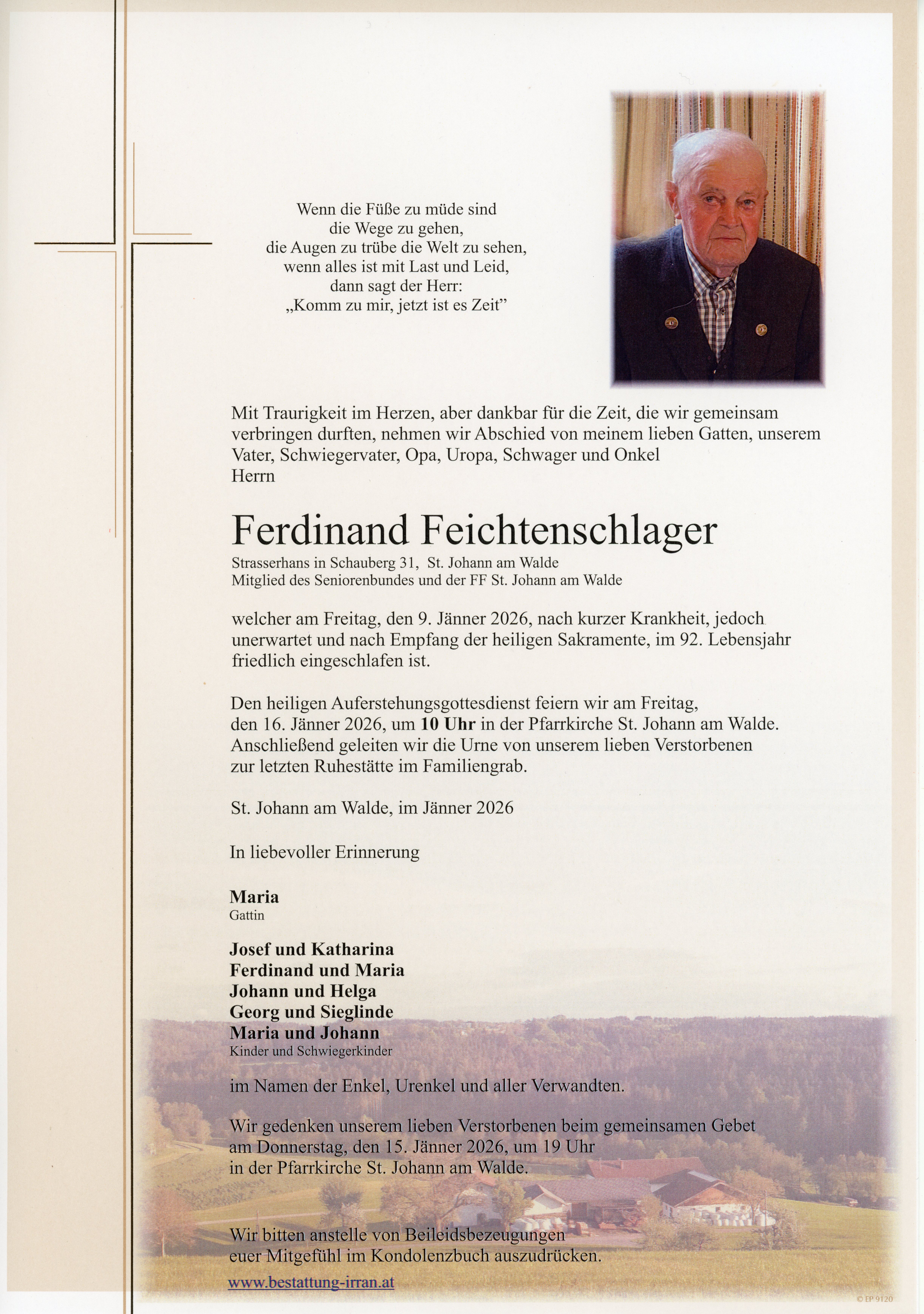 † Freitag, 9. Jänner 2026 Ferdinand Feichtenschlager St. Johann am Walde zurück