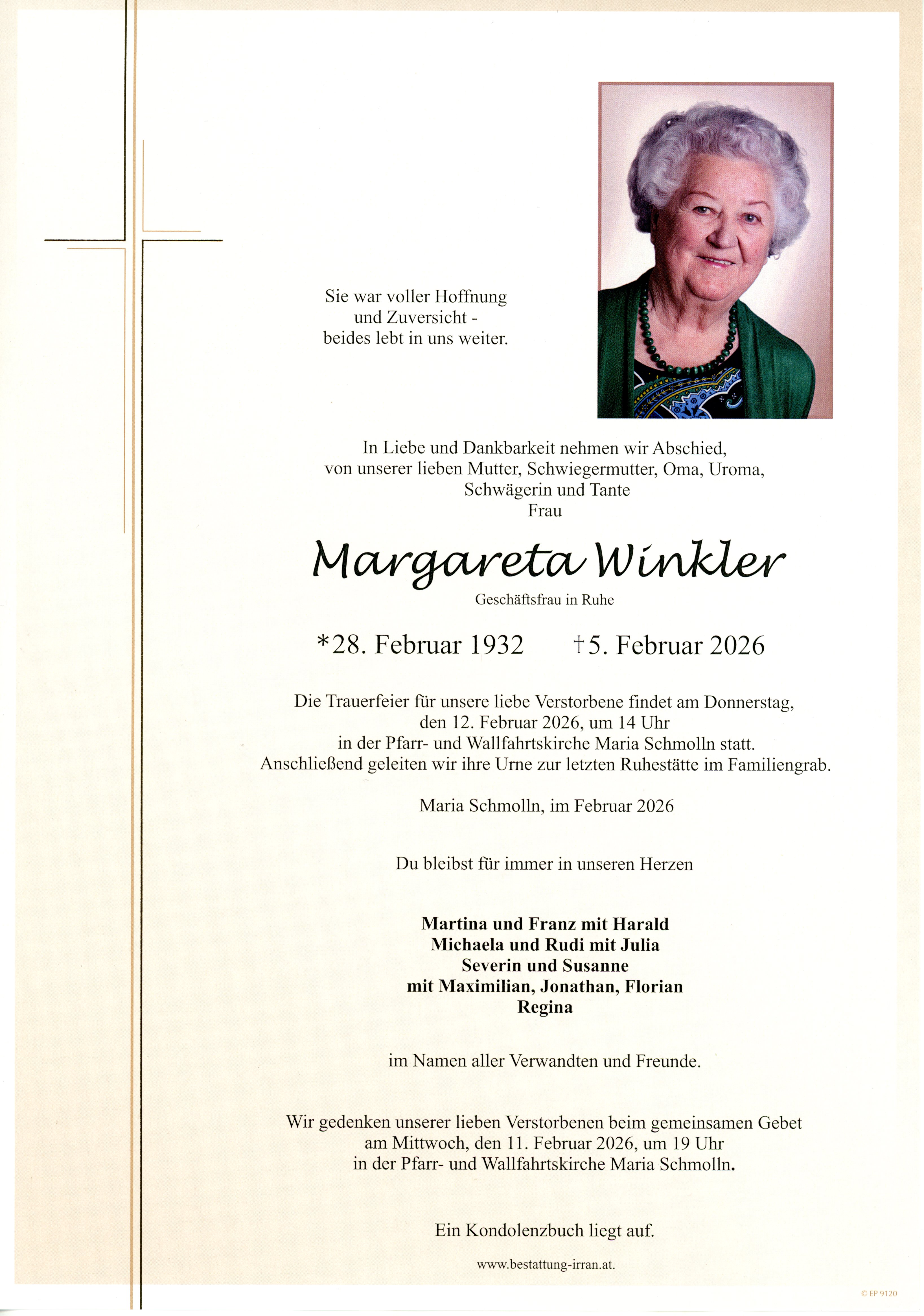 † Donnerstag, 5. Februar 2026 Margareta Winkler Maria Schmolln zurück