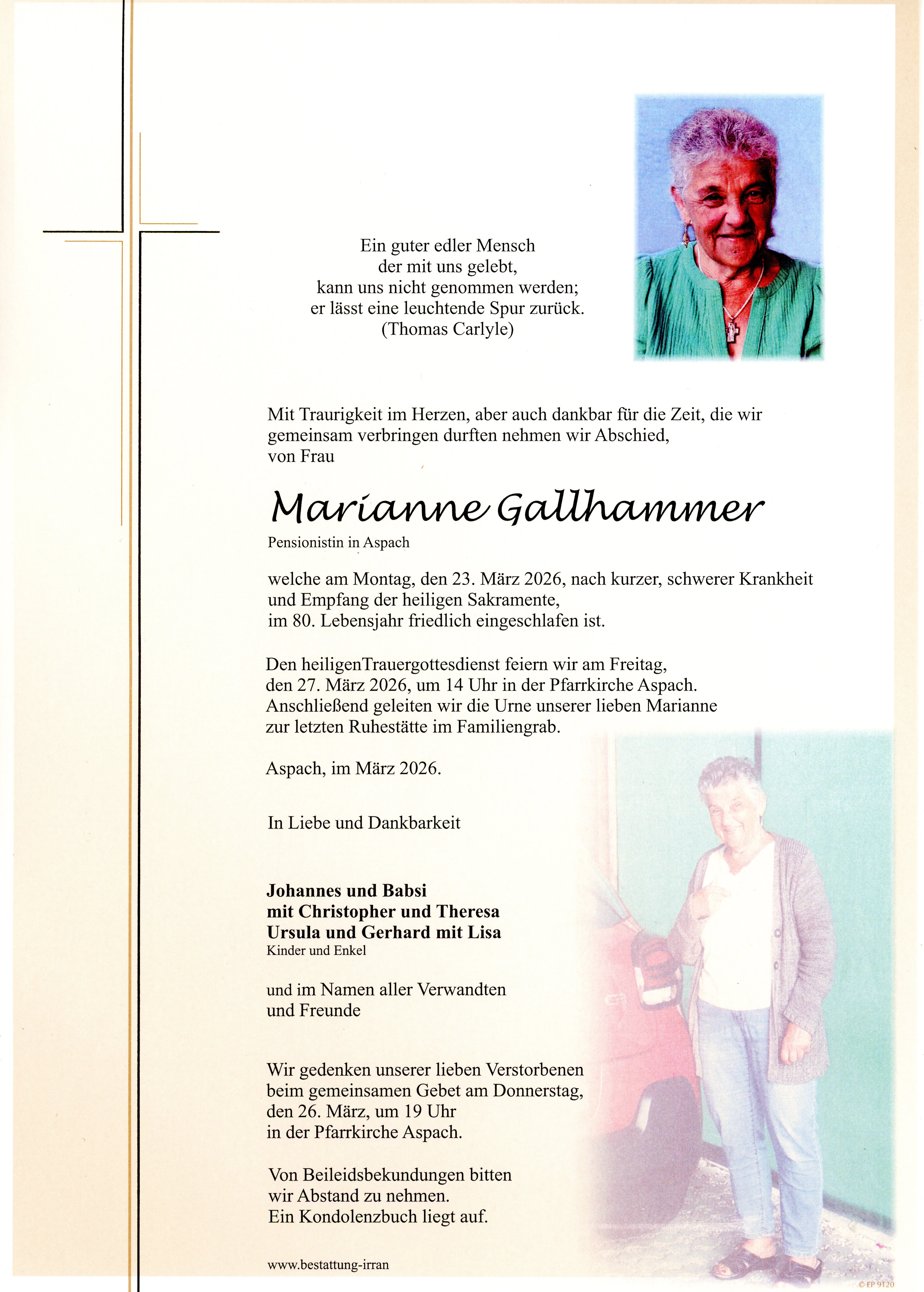 † Montag, 23. März 2026 Marianne Gallhammer Aspach zurück