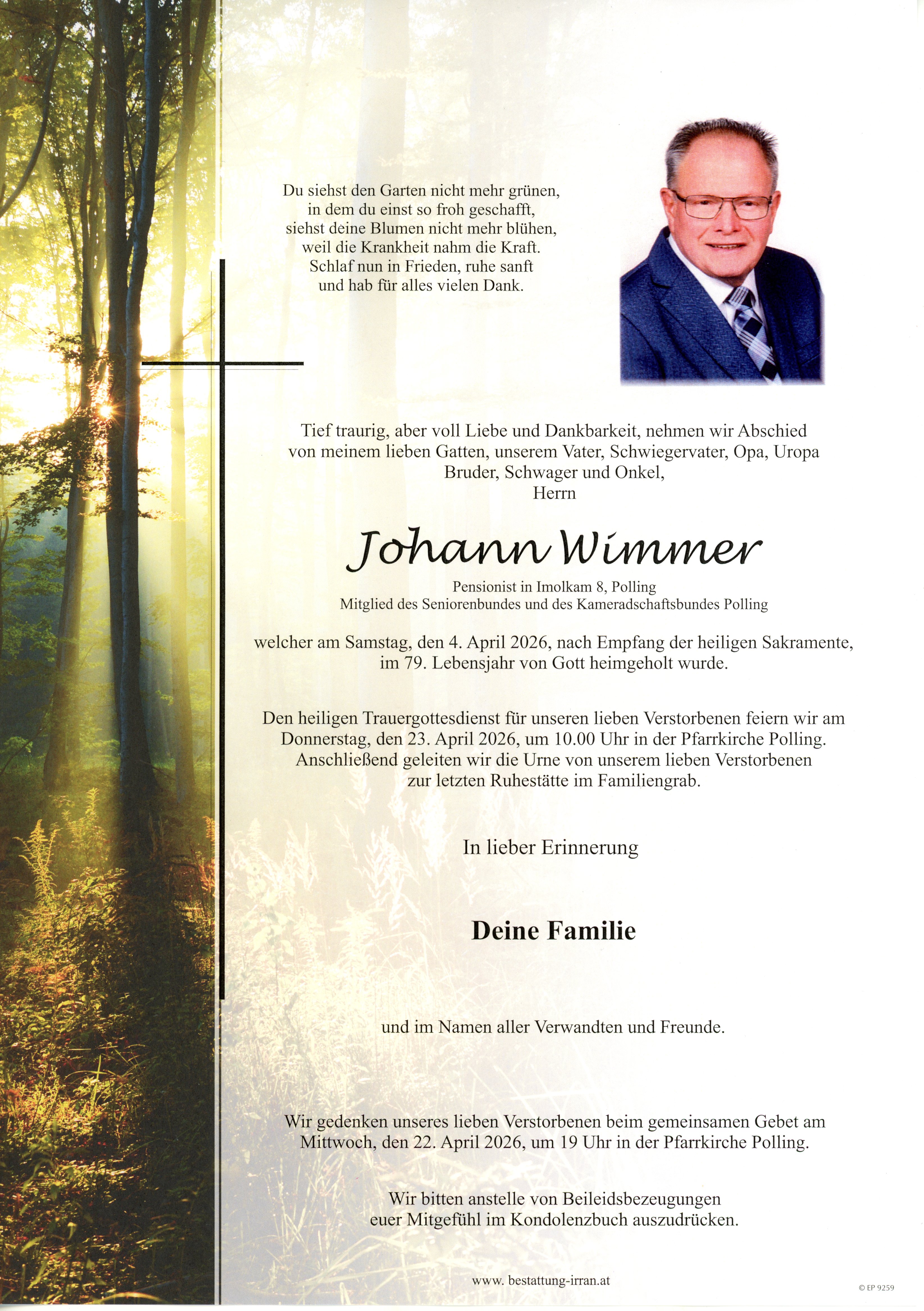 † Samstag, 4. April 2026 Johann Wimmer Polling zurück